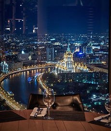 • Vision 75  Панорамный ресторан в Москва Сити с видом на Центр Города Москву белый Дом и МГУ